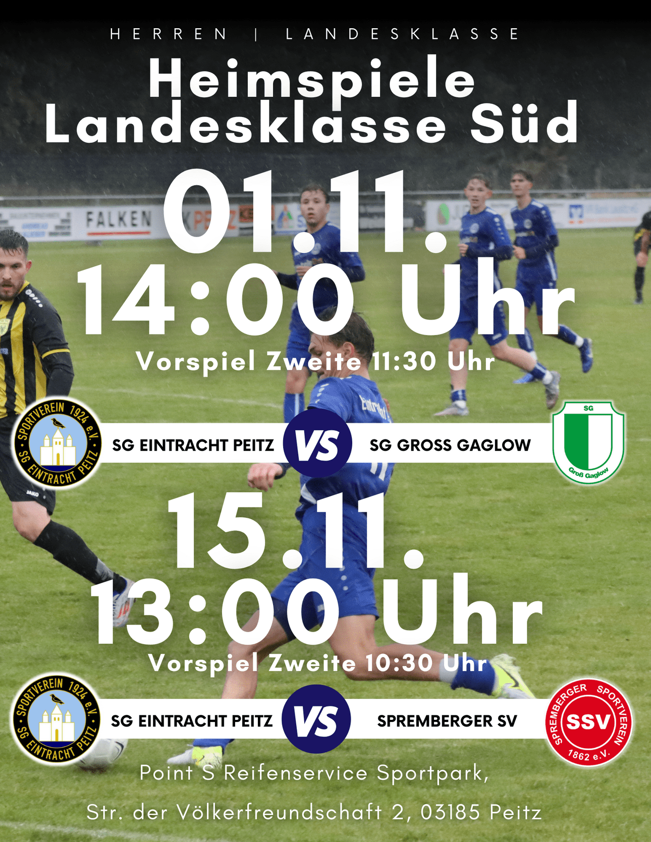 Im November gibt es 2 Spree-Neiße-Derbies für unsere Eintracht. Am 01.11. empfangen wir die Jungs von der SG Groß Gaglow. Anstoß ist aufgrund der Dunkelheit bereits um 14.00 Uhr.