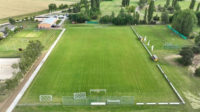 Unser Sportanlage im Jahr 2024. Die Modernisierung des B Platzes (links) ist fast abgeschlossen.